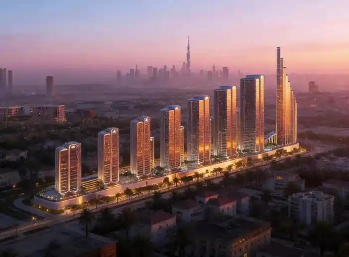 Binghatti City Dubai is the world’s first Mercedes-Benz-branded “city within a city” in Dubai’s Meydan neighbourhood. This AED 30 billion master-planned complex by Binghatti and Mercedes-Benz covers over 10 million square feet and includes 12 buildings with approximately 13,000 premium residences inspired by “Sensual Purity” design, comprehensive amenities, and a handover date of Q2 2029.